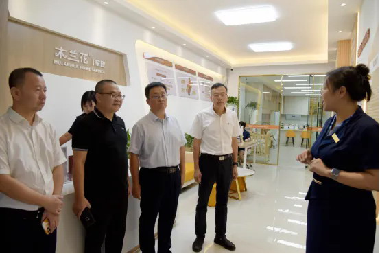 座談會(huì)前,考察團(tuán)一行先后參觀了木蘭花家政高端定制水果湖旗艦店、水果湖街道東亭社區(qū)木蘭花頤養(yǎng)中心等線下實(shí)體門店。