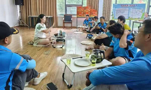 活動(dòng)現(xiàn)場,茶藝師示范基本泡茶手法,講解茶葉知識及品茶禮儀。新就業(yè)群體坐在蒲團(tuán)上,在茶藝師的指導(dǎo)下,親手泡茶,體驗(yàn)泡茶的樂趣與專注。在悠揚(yáng)的音樂中,大家品茗香茶,品嘗月餅糕點(diǎn),分享生活感悟,釋放壓力與負(fù)面情緒,分享心路歷程,獲得心靈慰藉。