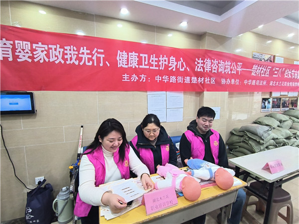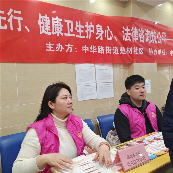 3月6日上午,湖北木蘭花職業(yè)培訓(xùn)學(xué)校聯(lián)合中華路街道楚材社區(qū)等多家單位,開展“育嬰家政我先行、健康衛(wèi)生護(hù)身心、法律咨詢筑公平””主題市集活動(dòng),為廣大居民朋友送上技能禮包與節(jié)日歡樂。