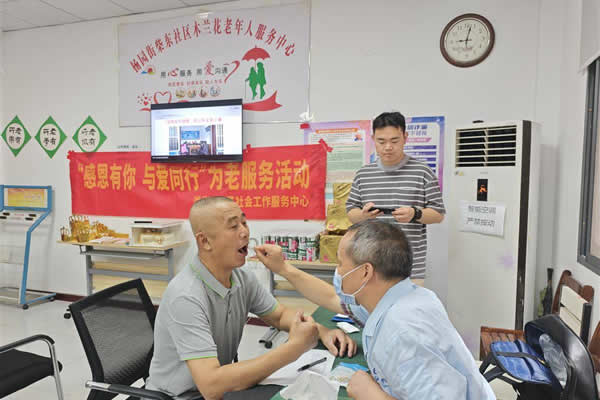 義診活動中,口腔醫(yī)生為老人們進(jìn)行口腔檢查,針對老人的口腔問題提出個(gè)性化的治療和護(hù)理建議。社區(qū)還對二季度中表現(xiàn)突出的銀齡志愿者進(jìn)行表彰?!般y齡志愿者們積極參與社區(qū)志愿服務(wù)活動,為老年人提供幫助,展現(xiàn)了‘老有所為、老有所樂’的精神風(fēng)貌?!辈駯|社區(qū)負(fù)責(zé)人說。