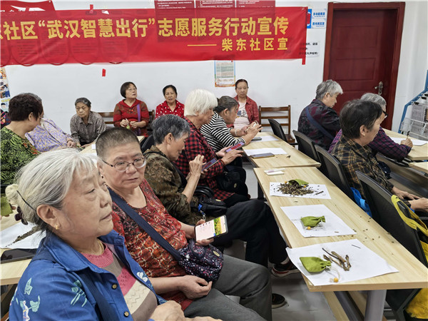 活動(dòng)剛開場,志愿者就捧著兩個(gè)袋子走到老人中間,“咱們今天不學(xué)神農(nóng)‘嘗’,咱來‘認(rèn)’——這是艾葉,摸起來糙糙的,聞著有點(diǎn)溫乎氣;這是薄荷葉,捏一下就冒涼絲絲的香味,都是咱身邊常見的好東西?!闭f著就捏起一撮干艾葉遞到張阿姨鼻尖,“您聞聞,是不是跟小時(shí)候老家曬的一個(gè)味兒?”張阿姨湊過去深吸一口,眼睛立刻亮了:“可不是嘛!以前端午掛門上驅(qū)蟲,沒想到還能助眠?”一句話勾起滿桌共鳴,李爺爺也接過薄荷葉捻了捻:“我夏天總愛用薄荷泡茶,涼絲絲的舒服,裝在包里貼身帶,是不是睡覺能踏實(shí)點(diǎn)?”你一言我一語的追問里,中醫(yī)藥的“奧秘”不再是書本上的字,成了老人們記憶里的煙火氣,越聊越熱乎。