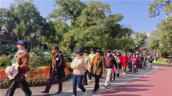 游戲結(jié)束后,老人們開啟自由休憩時光:喜歡安靜的在湖邊長廊品茶聊天,欣賞湖景;熱衷活動的則前往健身區(qū)體驗便民器材;還有人結(jié)伴在桂花林散步,享受秋日的寧靜。上午11時,在工作人員的提醒下,40 位老人戴著定制棒球帽,拎著剩余的能量包,有序集合乘坐大巴返程,活動圓滿落幕。