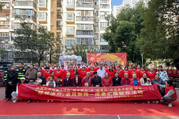 2025年11月5日,武昌楊園余家頭社區(qū)安勝花園廣場(chǎng)上人頭攢動(dòng)、熱鬧非凡,一場(chǎng)以“睦鄰活力,余風(fēng)新?lián)P”為主題的文化活動(dòng)成果匯報(bào)在此精彩上演。此次活動(dòng)由余家頭社區(qū)聯(lián)合湖北木蘭花社會(huì)工作服務(wù)中心共同主辦,現(xiàn)場(chǎng)氣氛熱烈,鄰里們歡聚一堂,共同沉浸在社區(qū)大家庭的溫暖與活力之中。
