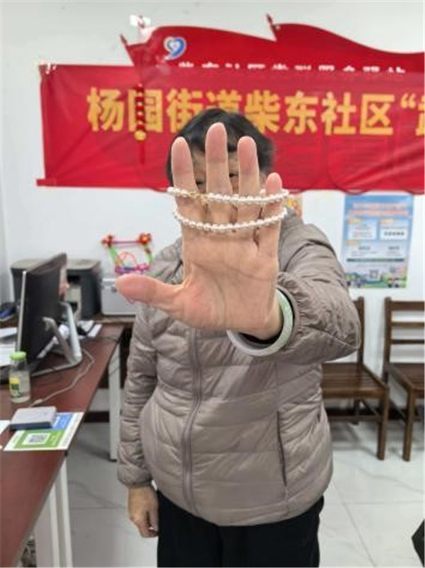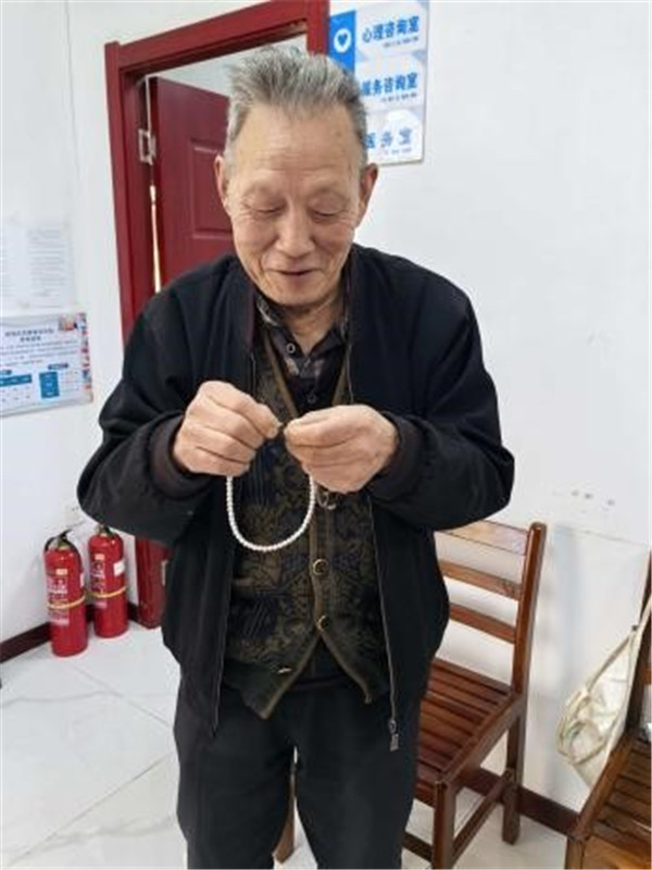活動(dòng)接近尾聲,老人們都完成了屬于自己的珍珠項(xiàng)鏈??粗种写玫捻?xiàng)鏈,王奶奶輕輕摸了摸珍珠,眼眶有些濕潤(rùn):“好久沒這么開心地做過手工了,謝謝你們還想著我們這些老人,這條項(xiàng)鏈我要好好戴著?!敝驹刚邆冞€貼心地幫行動(dòng)不便的老人把項(xiàng)鏈?zhǔn)蘸?,叮囑他們回家后可以搭配喜歡的衣服。