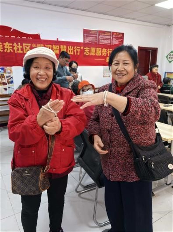 活動(dòng)當(dāng)天,社區(qū)活動(dòng)中心被裝點(diǎn)得格外溫馨,長(zhǎng)桌上整齊擺放著圓潤(rùn)的珍珠、細(xì)軟的銀鏈、小巧的搭扣,還有志愿者提前準(zhǔn)備好的放大鏡與軟墊——考慮到老人們視力與手部靈活度的特點(diǎn),這些細(xì)節(jié)讓老人們一進(jìn)門便倍感貼心?!鞍⒁棠@邊,光線好”“伯伯別急,工具都給您放手邊了”,志愿者們熱情地引導(dǎo)老人入座,手把手幫他們整理材料包,原本有些拘謹(jǐn)?shù)睦先藗兒芸旆潘上聛?,活?dòng)室里漸漸響起熱鬧的交談聲。