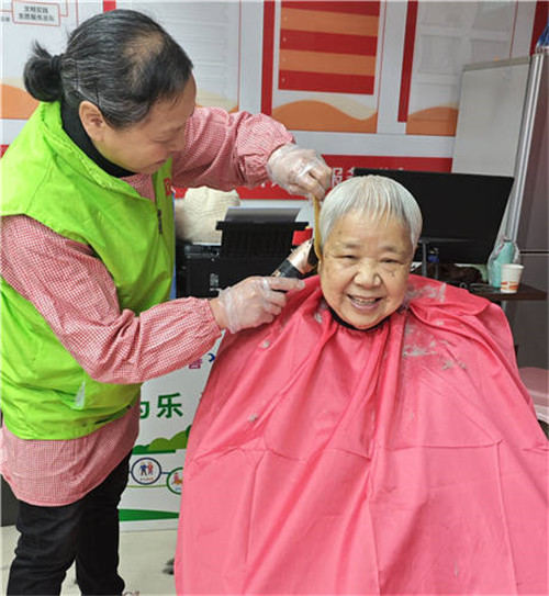 活動(dòng)現(xiàn)場(chǎng)暖意融融,志愿者們提前布置妥當(dāng),分為理發(fā)區(qū)和寫春聯(lián)區(qū)。理發(fā)區(qū)里,理發(fā)師耐心詢問老人們的需求,細(xì)致修剪發(fā)型,一邊理發(fā)一邊和老人拉家常,修剪后的發(fā)型整潔利落,贏得老人們一致稱贊。