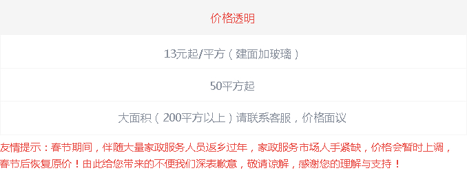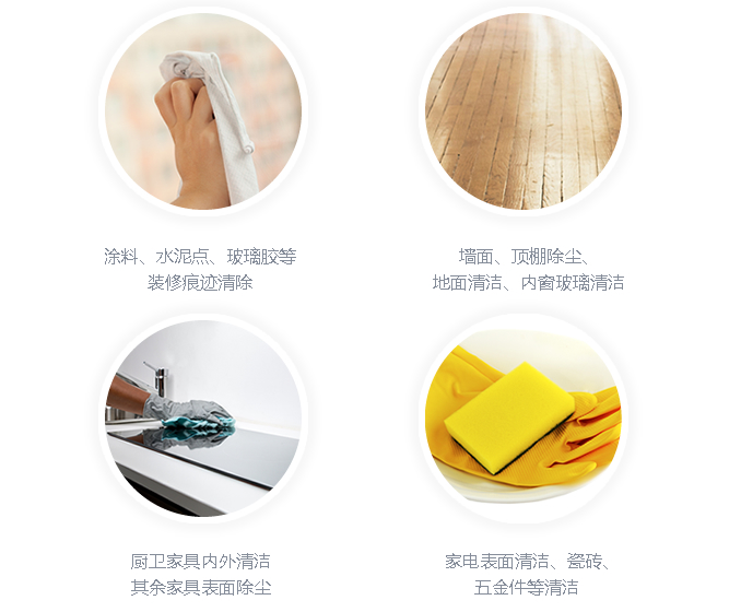 使用2千瓦真空吸塵器、牽塵器,將所有墻面、臺面、暖氣罩內(nèi)、天花板、裝飾吊頂、各種櫥柜、紗窗等易附灰塵的材料,用品,家具表面擦拭。